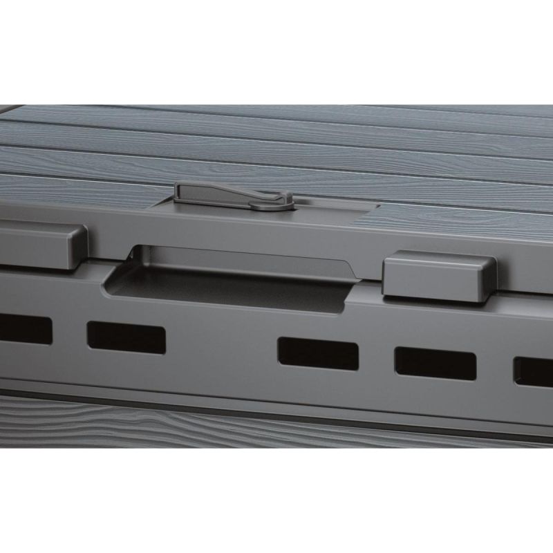- Ein praktischer Griff, der die obere Klappe verriegelt, erleichtert das Einwerfen von Abfällen in den Komposter.