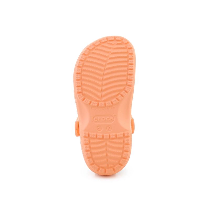 Die Crocs Classic Kids Clog T Electric Sunstone 206990-86A sind kultige Kinder-Sandalen in einem leuchtenden Orange. Dieses klassische Modell zeichnet sich durch seine leichte Konstruktion, das einfache Hineinschlüpfen und das charakteristische Obermaterial mit Belüftungslöchern aus, die für Atmungsaktivität sorgen und Feuchtigkeit ableiten. Dadurch sind sie perfekt für den Alltag geeignet – ob zu Hause, beim Spazierengehen, im Garten, im Urlaub oder beim Spielen im Wasser. Die Schuhe bestehen aus leichtem, strapazierfähigem und pflegeleichtem Croslite™-Material, das für Dämpfung und Komfort sorgt. Die legendäre Crocs Comfort™-Technologie bietet leichten, flexiblen und 360°-Komfort. Ein drehbarer Fersenriemen optimiert die Passform und ermöglicht durch Umklappen ein schnelles An- und Ausziehen. Das Modell ist wasserdicht, trocknet schnell und kann mit Jibbitz™-Pins individuell gestaltet werden. Diese bequemen Kinder-Sandalen vereinen das bekannte Crocs-Design mit Funktionalität, die Kinder und Eltern gleichermaßen schätzen.