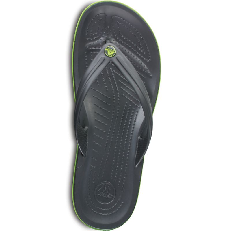 - Crocs Flip-Flops in Graphit mit grünen Elementen.