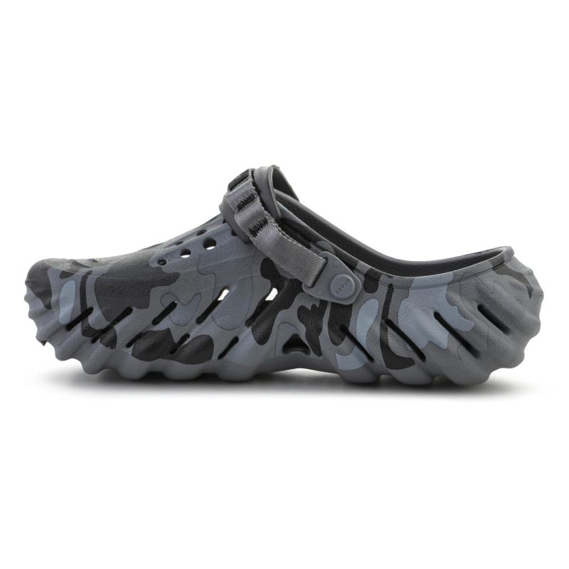 Der Crocs Echo Duck Camo Clog in Anthrazit/Schwarz ist ein Modell aus der Echo-Kollektion und wurde für alle entworfen, die Komfort mit einem modernen Streetwear-Look verbinden möchten. Seine markante, skulpturale Silhouette und der Enten-Camouflage-Print verleihen ihm einen kraftvollen, dynamischen Charakter, während die dunkle Farbgebung in Anthrazit/Schwarz seinen universellen Stil unterstreicht.