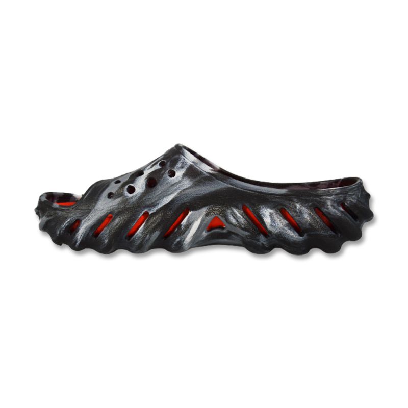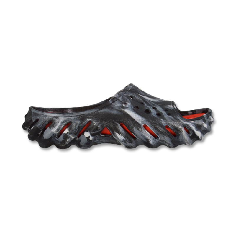 Crocs Echo Marbled Slide Pool Clogs in Schwarz/Flame - 208467-0X9