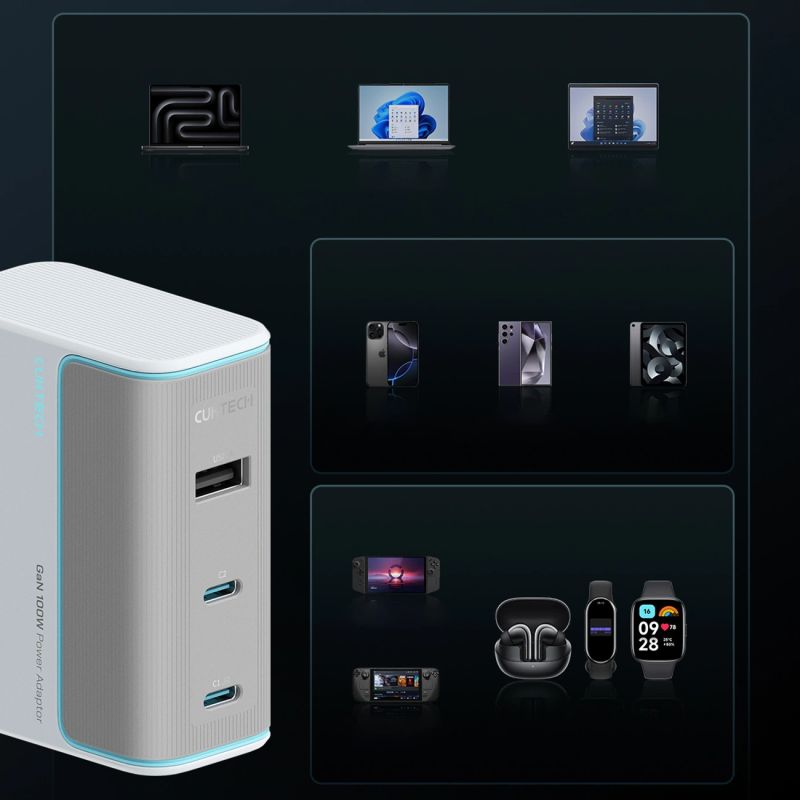 Cuktech AD1003EU 100W GaN-Wandladegerät 2x USB-C + USB-A - Weiß