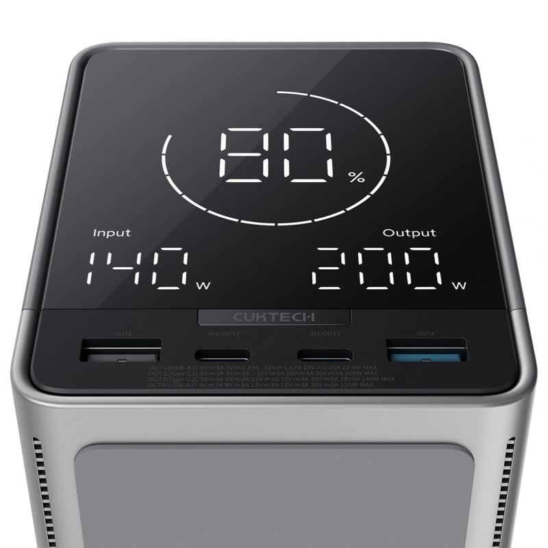 Cuktech Powerbank 300W 40000mAh mit kabelloser Ladefunktion, 2x USB-C + 2x USB-A - Schwarz