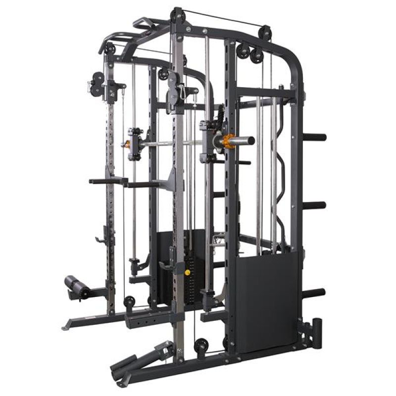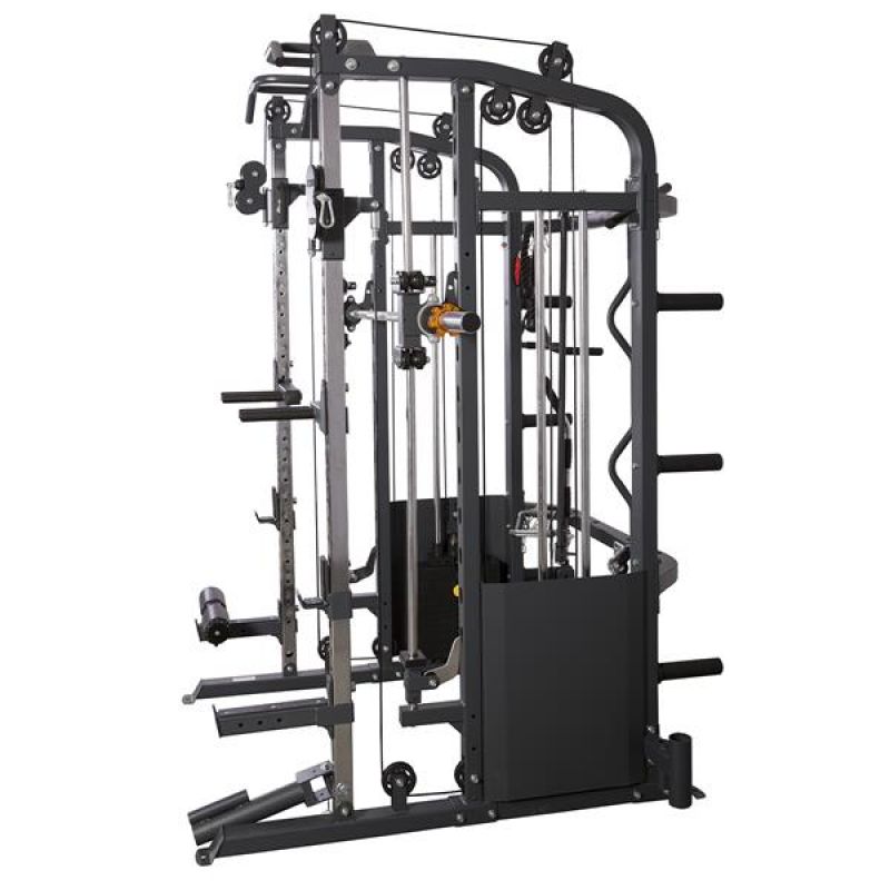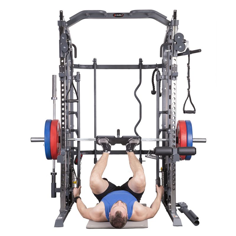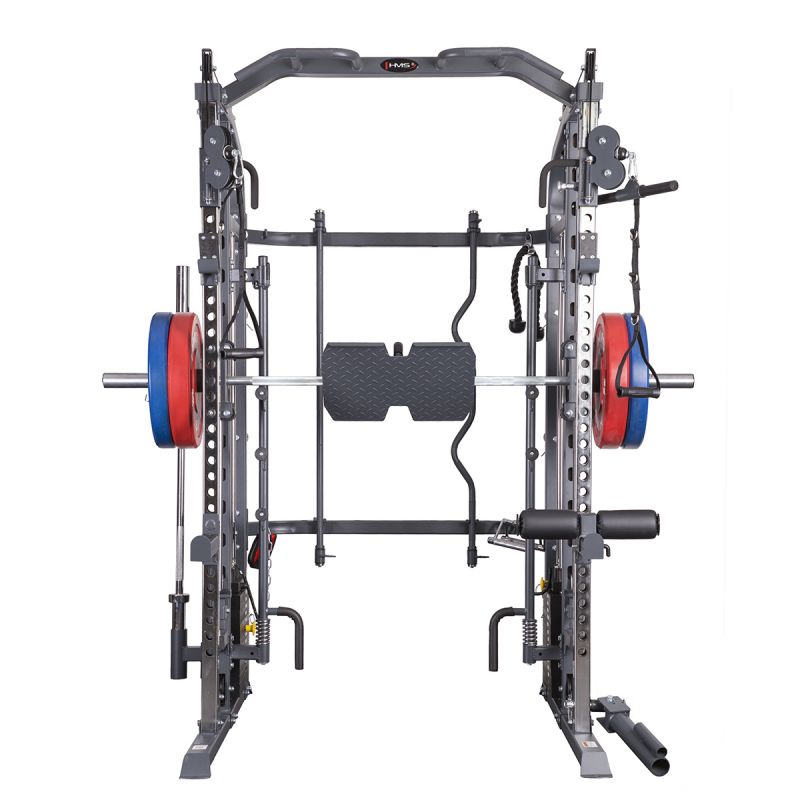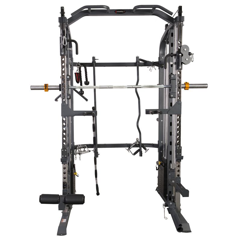 Wir präsentieren die CYKLOP 2 HMS, ein stabiles Gerät der semikommerziellen Klasse. Es eignet sich ideal für den kommerziellen Einsatz in kleinen Fitnessclubs und zu Hause. Es kombiniert die klassische Smith Machine mit Seilzügen und ermöglicht so ein wirklich umfassendes Training.