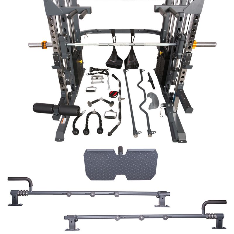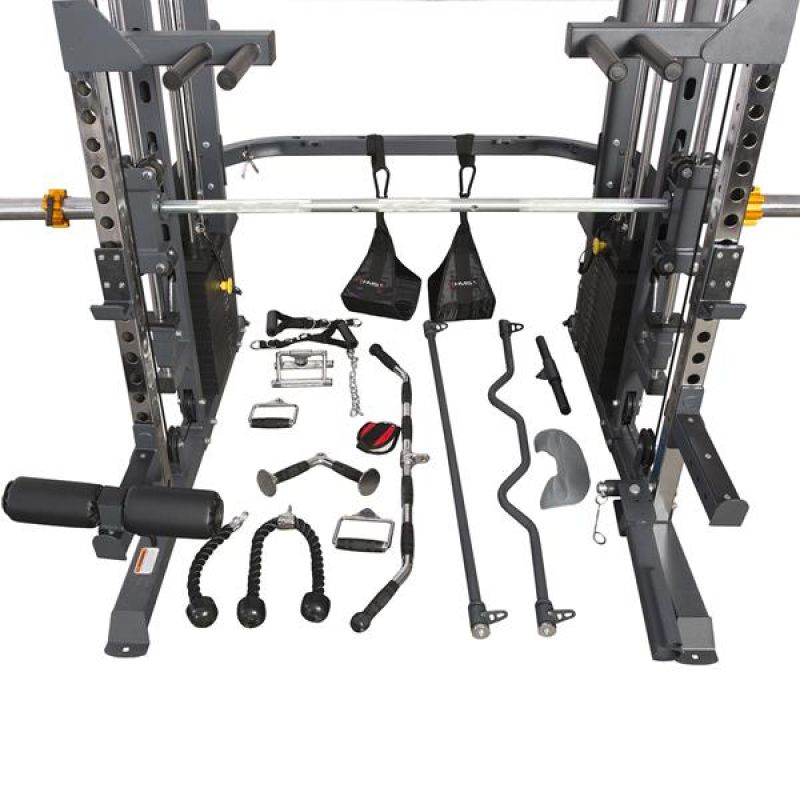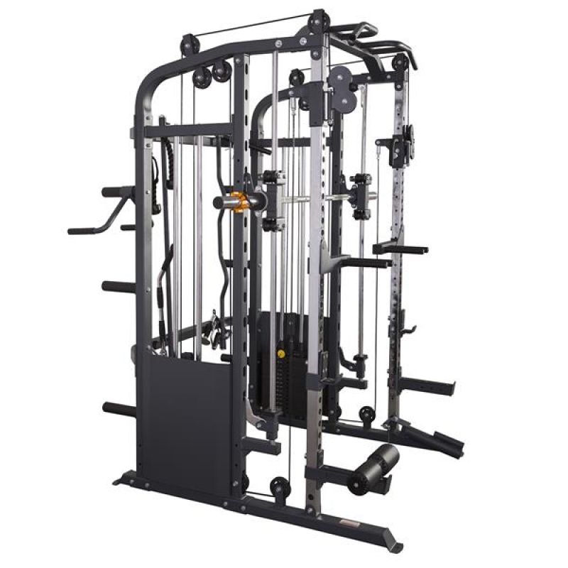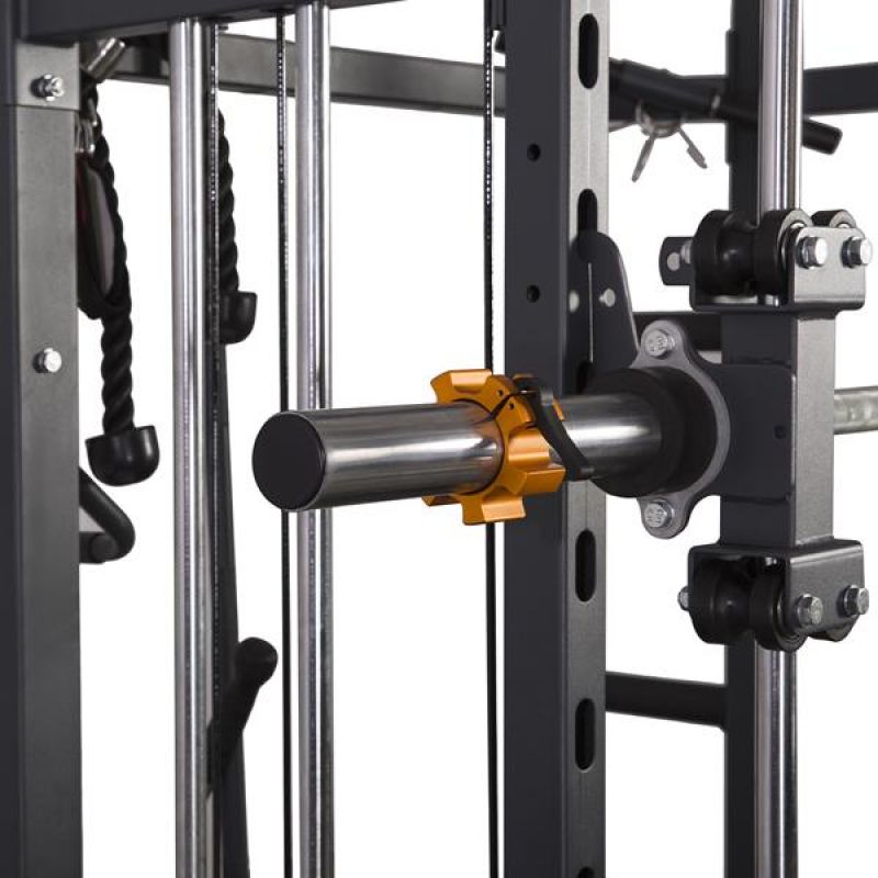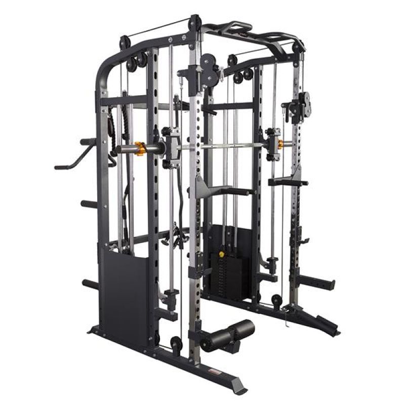 Wir präsentieren die CYKLOP 2 HMS, ein stabiles Gerät der semikommerziellen Klasse. Es eignet sich ideal für den kommerziellen Einsatz in kleinen Fitnessclubs und zu Hause. Es kombiniert die klassische Smith Machine mit Seilzügen und ermöglicht so ein wirklich umfassendes Training.