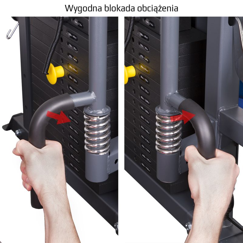 - ein Gerät zum umfassenden Training der oberen und unteren Muskelgruppen: Schultern, Brust, Rücken, Bizeps, Trizeps, Bauch, Rückenstrecker, Gesäß, Quadrizeps femoris, Bizeps femoris