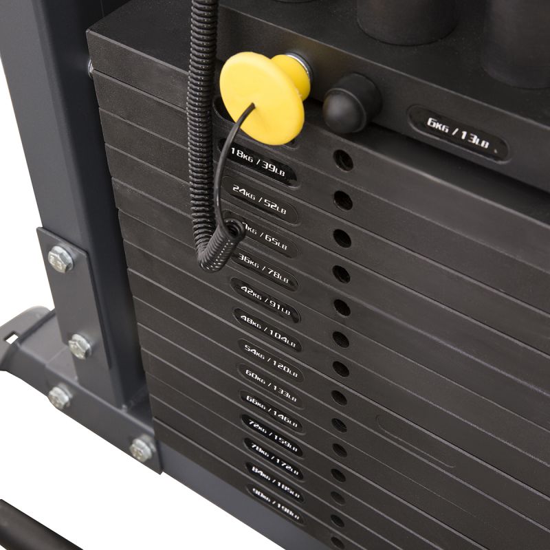 - Belastungsart: zwei 90kg-Laststapel, alle 6kg verstellbar