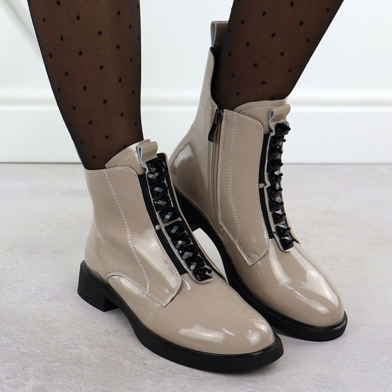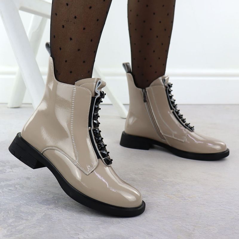 Damen-Ankle-Boots aus Lackleder in Beige, D&A S.Barski Premium Kollektion MR52-108