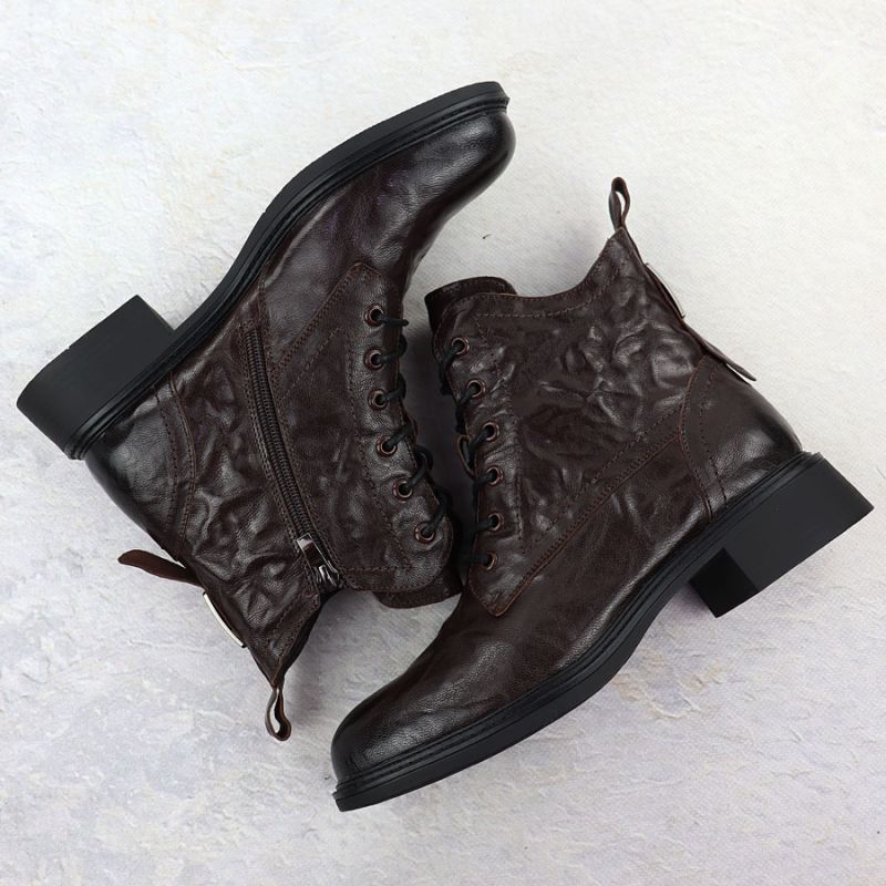 Diese modischen Damen-Ankle-Boots sind die neueste Kreation von Vinceza. Sie zeichnen sich durch hochwertige Verarbeitung und hohen Tragekomfort aus. Die Schuhe verfügen über einen Schnürverschluss und einen Reißverschluss. Futter und Innensohle sind mit weichem Fell gefüttert. Diese Stiefel verleihen jedem femininen Outfit einen Hauch von Eleganz!