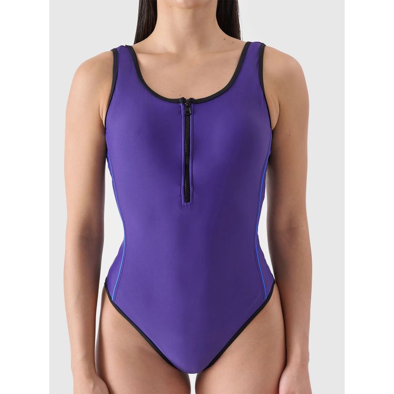 Dieser einteilige Damen-Badeanzug bietet Komfort und Bewegungsfreiheit für alltägliche Sommeraktivitäten, zum Entspannen am Strand oder zum Freizeitschwimmen. Der Badeanzug besteht aus synthetischem Material für Langlebigkeit und einfache Pflege. Der Zusatz von 15 % Elastan macht das Material dehnbar und bequem. Ein weiches, hygienisches Futter sorgt für Komfort und Schutz. Der integrierte Ausschnitt mit zusätzlichem Reißverschluss. Die Cups sind mit herausnehmbaren Polstern ausgestattet. Die bequemen, breiteren, nicht verstellbaren Träger sind bequem. Der Rücken ist tief ausgeschnitten.