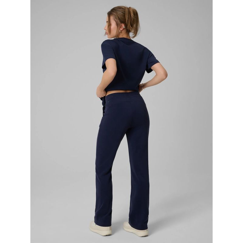 Dieses Modell verfügt über offene Seitentaschen , in denen Sie Ihre wichtigsten Dinge bequem verstauen können. Es ist eine praktische Wahl für Frauen, die eine bequeme Hose mit schlichtem Schnitt und weichem, angenehmem Material suchen.