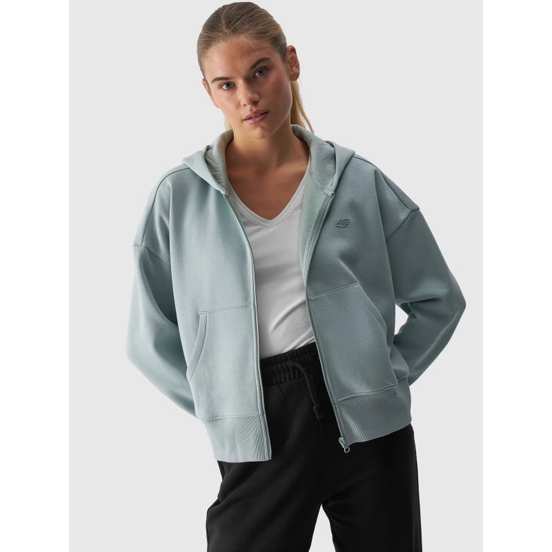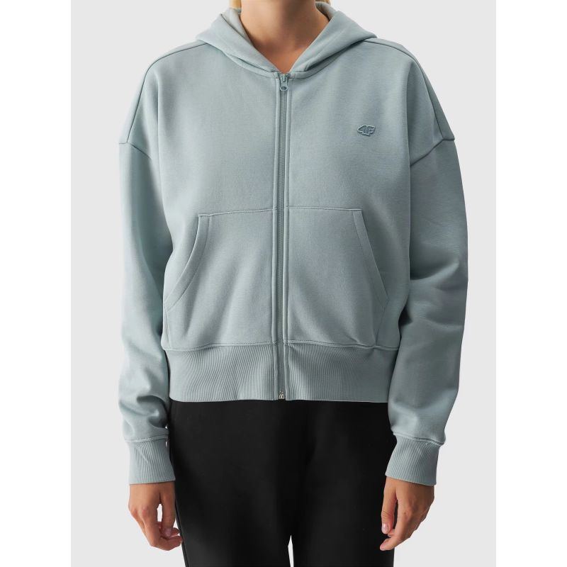 Dieses Damen-Kapuzensweatshirt mit durchgehendem Reißverschluss passt perfekt zu lässigen und sportlichen Alltagsoutfits. Das Damen-Kapuzensweatshirt hat ein mittleres Gewicht von 320 g/m² und ist dadurch weich und atmungsaktiv. Es verfügt über eine integrierte Kapuze am Halsausschnitt. Elastische Bündchen mit Kordelzug. Zwei offene Taschen befinden sich an den Seiten. Der Hauptreißverschluss ist einseitig. Die überschnittenen Ärmel sorgen für eine entspannte Passform. Weite Ärmel sorgen für ein bequemes Tragegefühl.