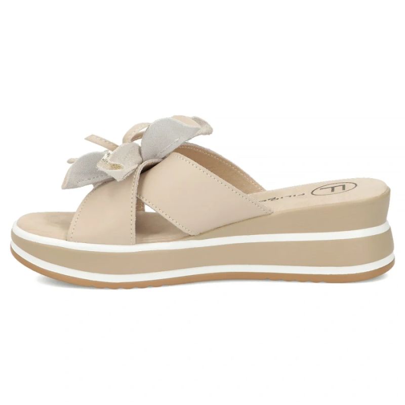 Damen-Keilsandalen aus Leder mit Blumenmuster, beige, Filippo DK7636
