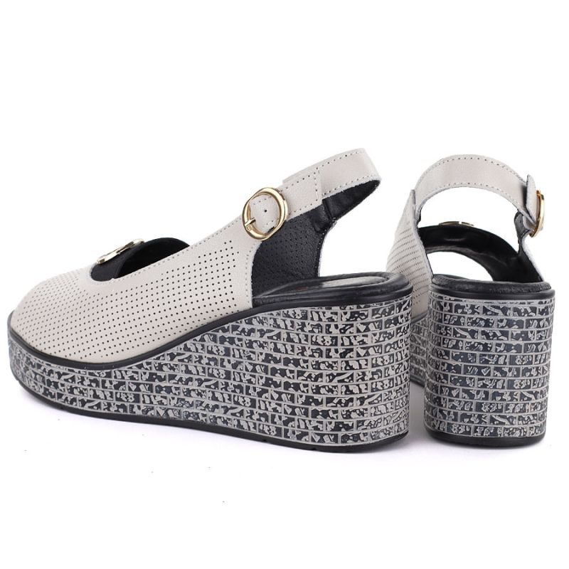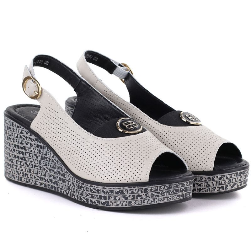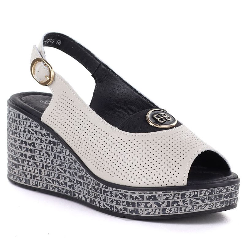 Damen-Keilsandalen aus Leder mit durchbrochenem beigem Muster, S.Barski 7010