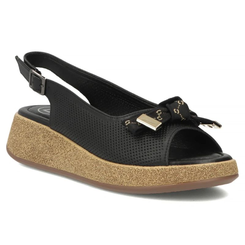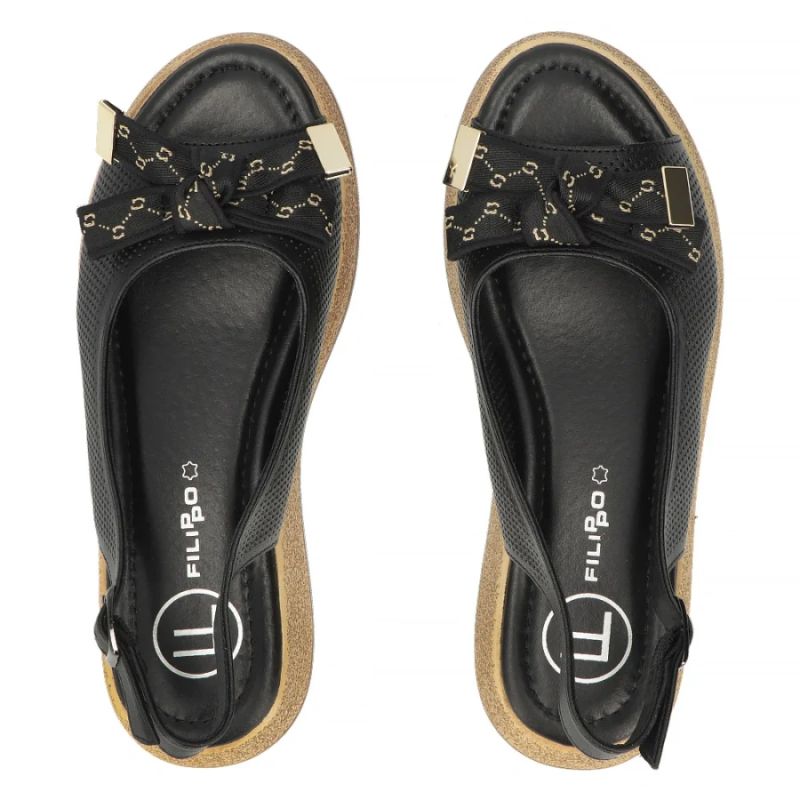 Damen-Keilsandalen aus Leder mit durchbrochenem Muster, schwarz, Filippo DS7582