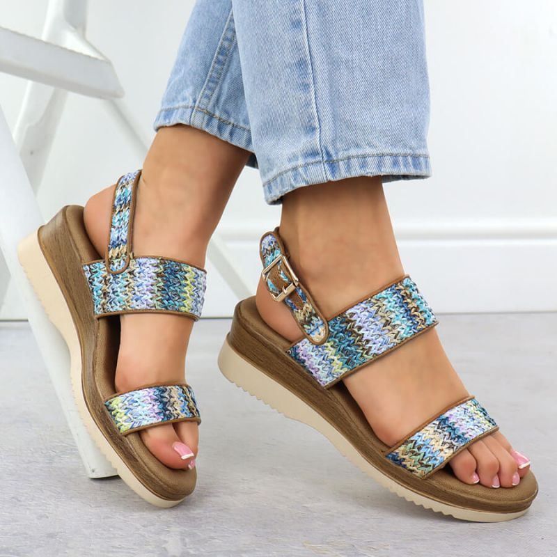 Damen-Keilsandalen, blau geflochten, Potocki 45302