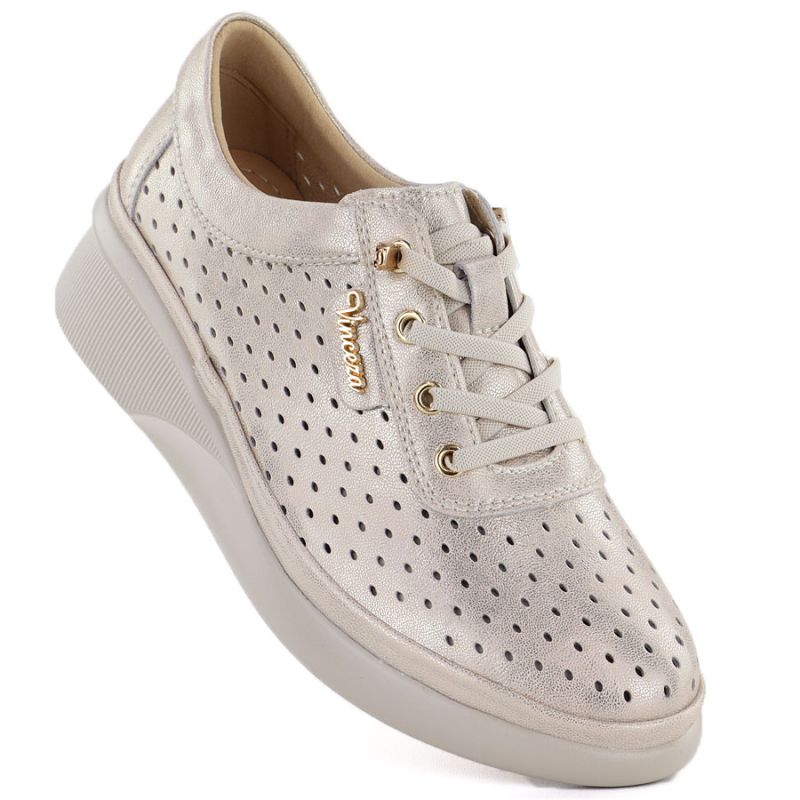 Damen-Keilschuhe aus Leder mit durchbrochenem Muster, Gold, Vinceza 79603
