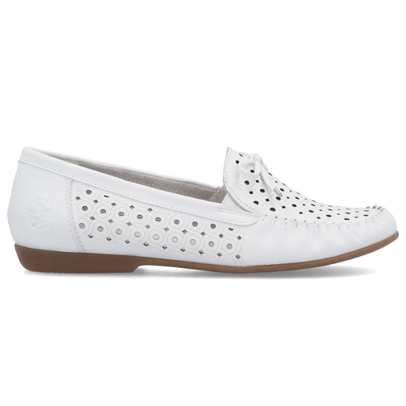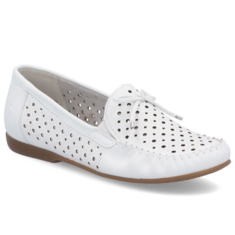 Damen-Ledermokassins, durchbrochen, leicht, bequem, weiß, Rieker L6352-80