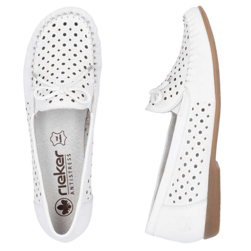 2. Damen-Ledermokassins, durchbrochen, leicht, bequem, weiß, Rieker L6352-80