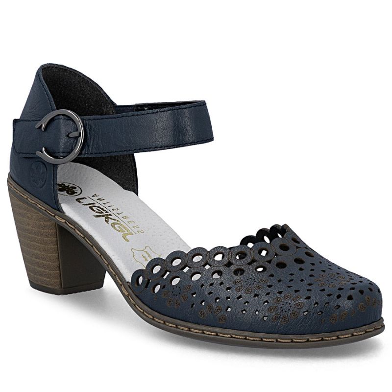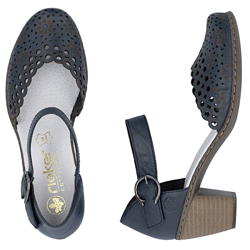4. Damen-Ledersandalen mit bequemem Absatz, durchbrochenes Muster, marineblau, Rieker 40902-14