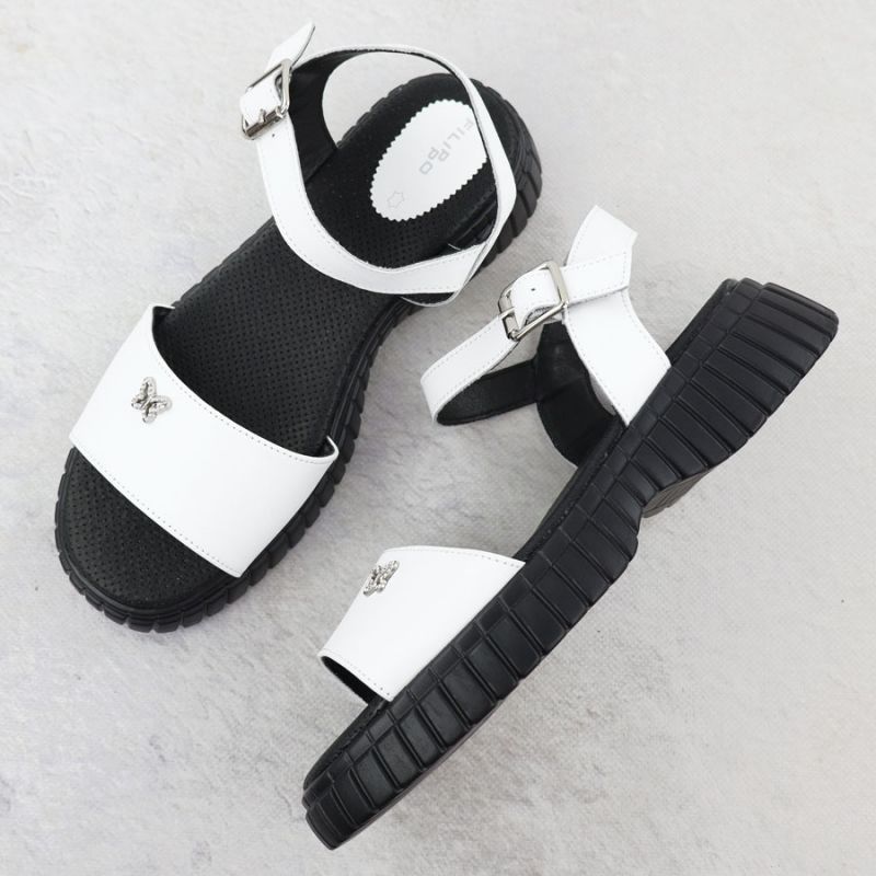 Damen-Ledersandalen mit dicker Sohle und Schmetterlingsdetail, weiß, Filippo DS6811