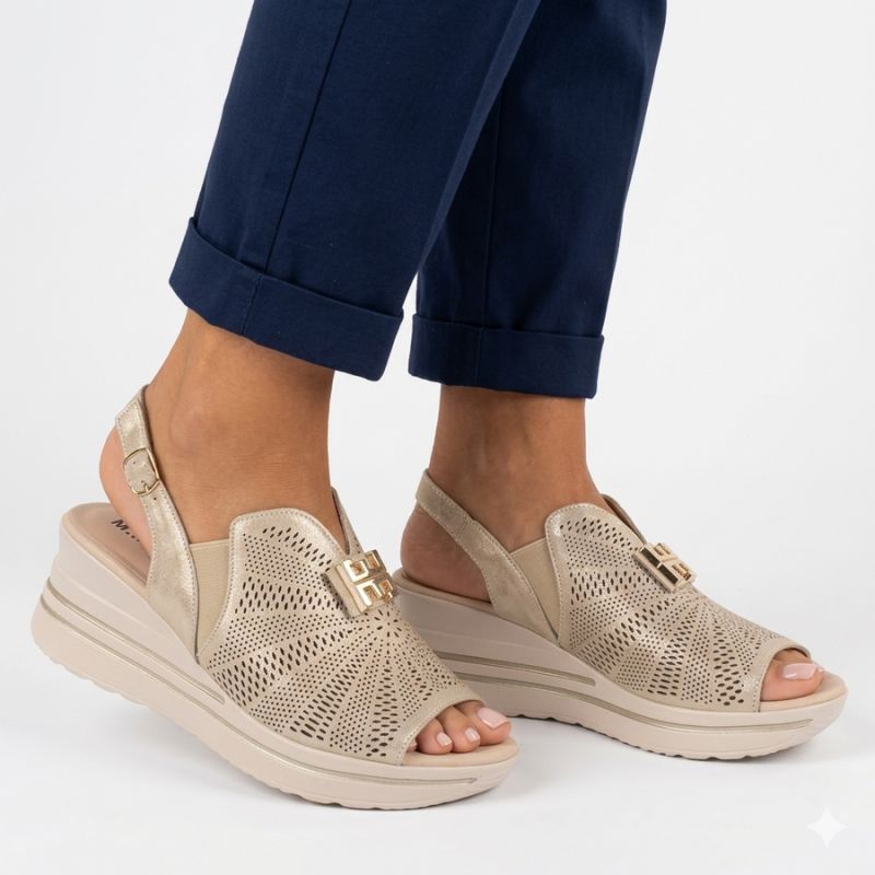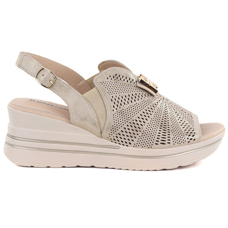 4. Damen-Ledersandalen mit Plateau, goldener Keilabsatz, M.Daszyński 25144-4