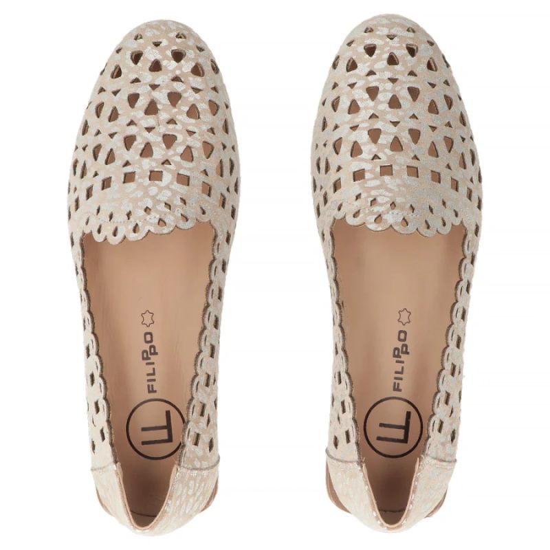 Damen-Lederschuhe mit durchbrochenem Muster, beige, Filippo DP7710
