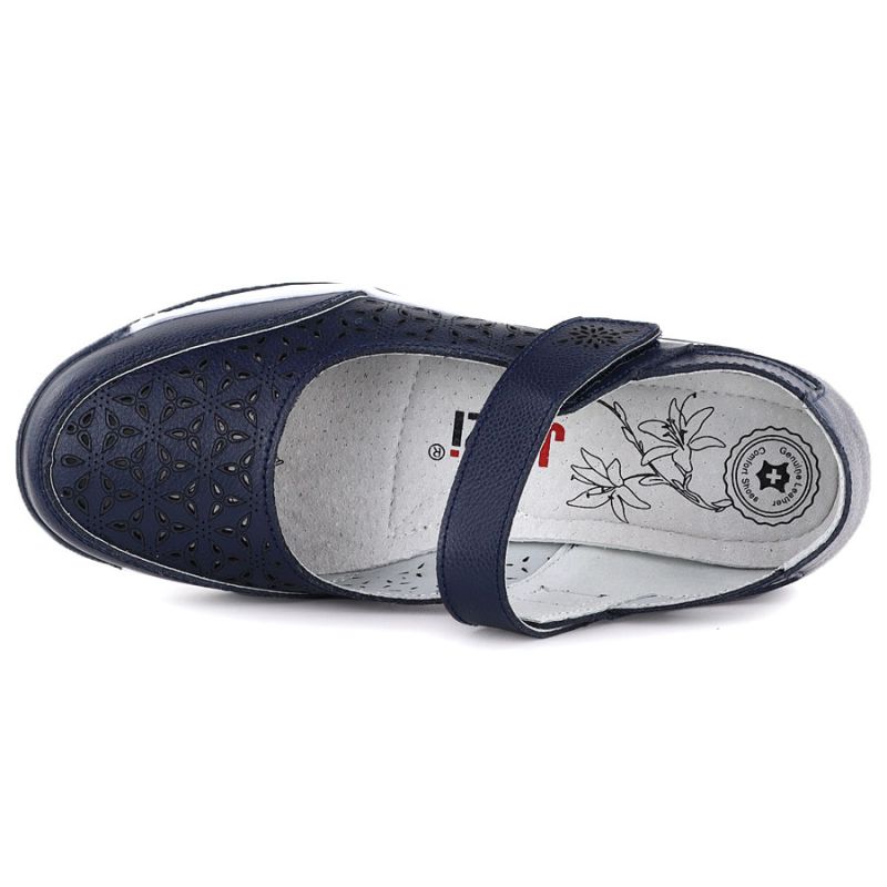 Damen-Lederschuhe mit durchbrochenem Muster und Klettverschluss, marineblau, Jezzi 9763