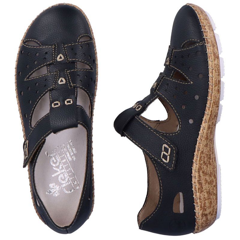 5. Damen-Lederschuhe mit Lochmuster, bequem, mit Klettverschluss, schwarz, Rieker 44852-14
