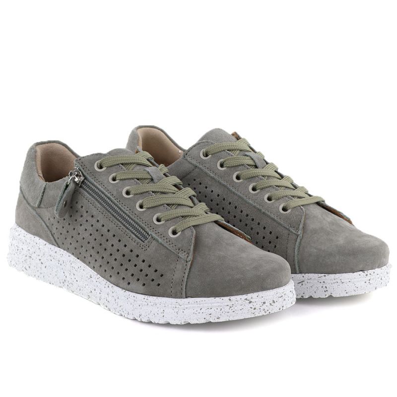 Damen-Lederschuhe mit Lochmuster und grüner Plateausohle, Modell M.Daszyński 26PB17-04