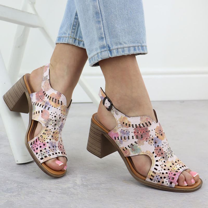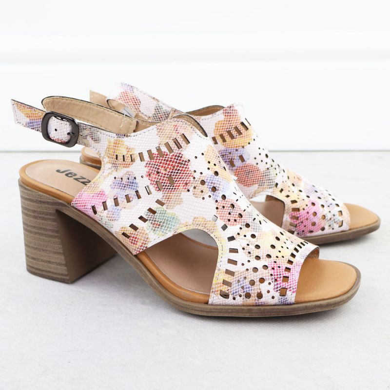 Damen-Sandalen mit hohem Absatz und durchbrochenem Blumenmuster, Modell Jezzi 24125