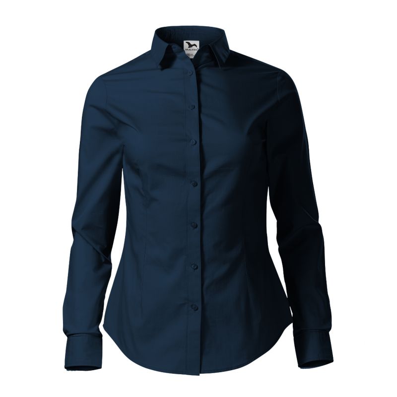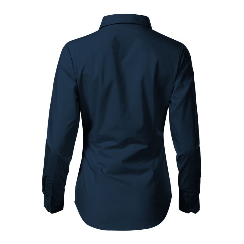 Popeline, 100 % Baumwolle, taillierter Schnitt mit Seitennähten, Abnäher betonen die weibliche Figur, Hemdkragen, Vorderteile mit Falte abgeschlossen, lange Ärmel mit gekerbten Manschetten und 2 Knöpfen, Knöpfe in der gleichen Farbe wie der Stoff (2 Ersatzknöpfe), abgerundeter Saum