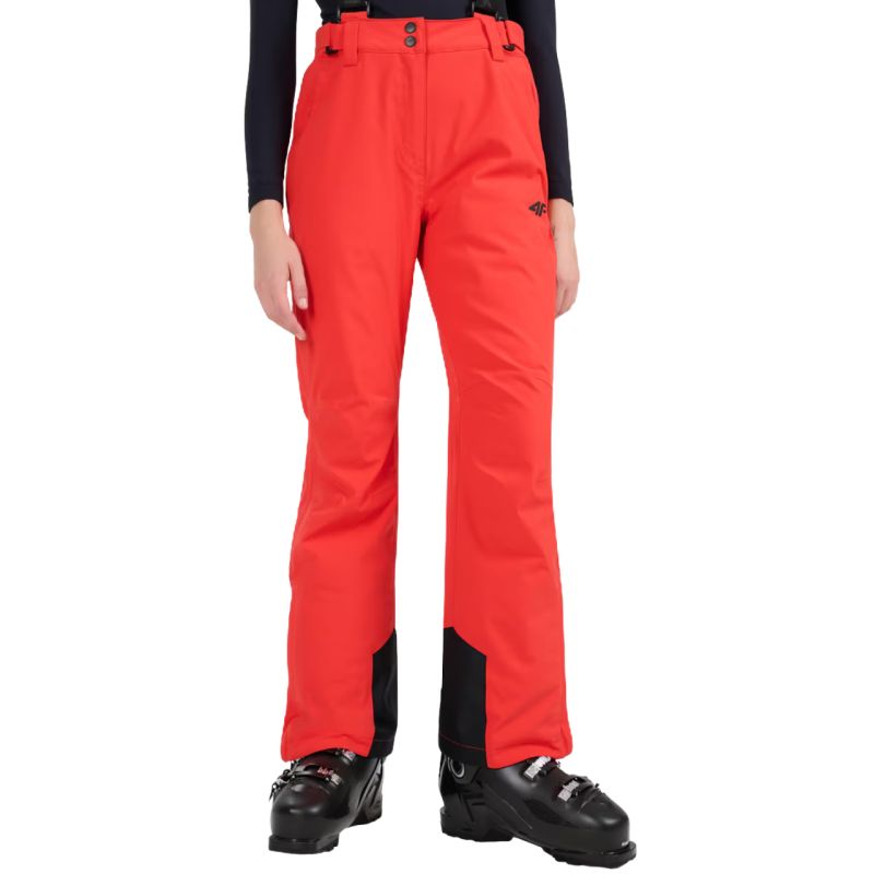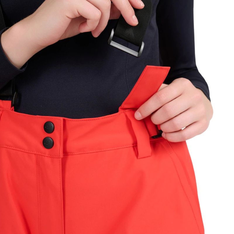 Damen-Skihose 4F FNK F0944 rot 4FWAW25TFTRF0944 62S Die Damen-Skihose 4F bietet nicht nur auf der Piste Bewegungsfreiheit und Schutz. Technische Daten: Hauptmaterial: 100 % Polyester; Zusatzmaterial: 100 % Polyester; Futter: 100 % Polyester; Füllung: 100 % Polyester (Polyester-Isolierung); Wassersäule: 5.000 mm; Atmungsaktivität: 3.000 g/m²/24h; NeoDry 5000/3000 Membran – schützt vor leichtem Regen und unterstützt die Atmungsaktivität des Materials; Alle Nähte versiegelt – zusätzlicher Schutz vor Feuchtigkeit; Hydrophobe Ausrüstung – reduziert die Wasseraufnahme durch die Außenschicht; Polyester-Isolierung – sorgt für Wärme ohne zusätzliches Gewicht; Integrierte Schneegamaschen – verhindern das Eindringen von Schnee; Abnehmbare, verstellbare Hosenträger – für individuelle Anpassung und hohen Tragekomfort; Verstellbarer Bund mit Klettverschluss – passt sich der Figur an und sorgt für Stabilität; Verstärkungen an den Beinabschlüssen – erhöhen die Strapazierfähigkeit des Materials an wichtigen Stellen; Reißverschlüsse an den Beinseiten – erleichtern das Anziehen der Hose über den Skischuhen; 2 Seitentaschen mit Reißverschluss – für kleine Utensilien; Vorgeformte Kniepartie – für mehr Bewegungsfreiheit beim Skifahren; Hoher Bund - Schützt den Rücken und erhöht den Wärmekomfort auf der Piste · Glattes Futter – gleitet mühelos über Thermokleidung · Reflektierende Elemente – verbessern die Sichtbarkeit bei schlechten Lichtverhältnissen · Normale Passform – garantiert Komfort und Bewegungsfreiheit · Knöchellang – vollständige Beinabdeckung, ideal für winterliche Bedingungen