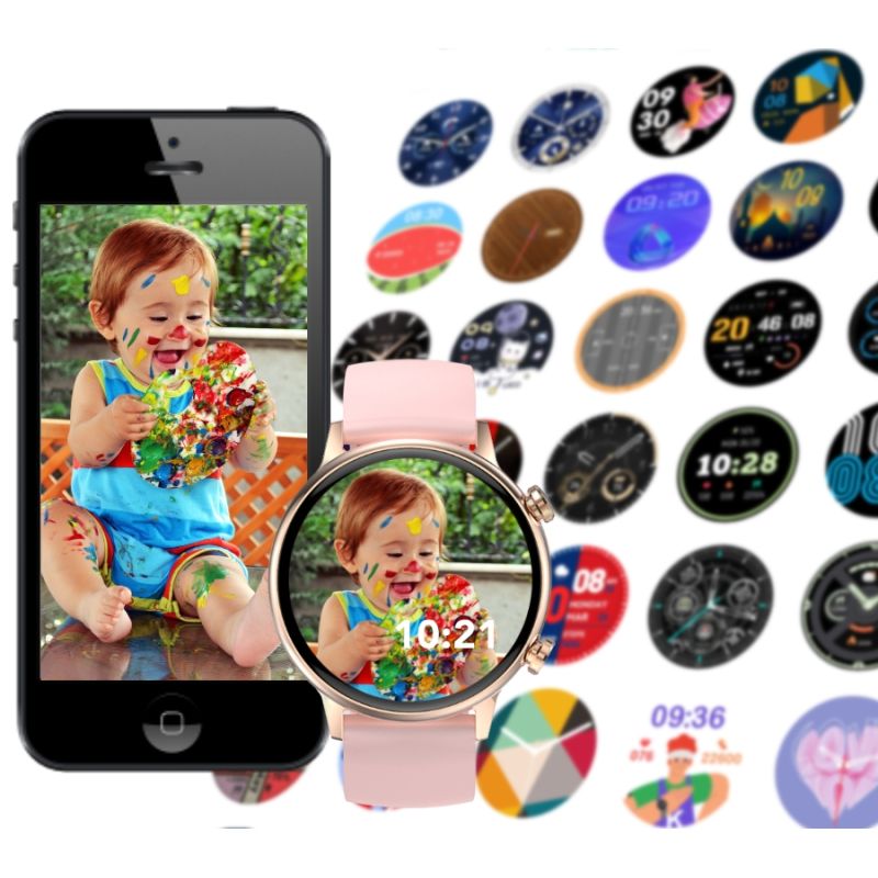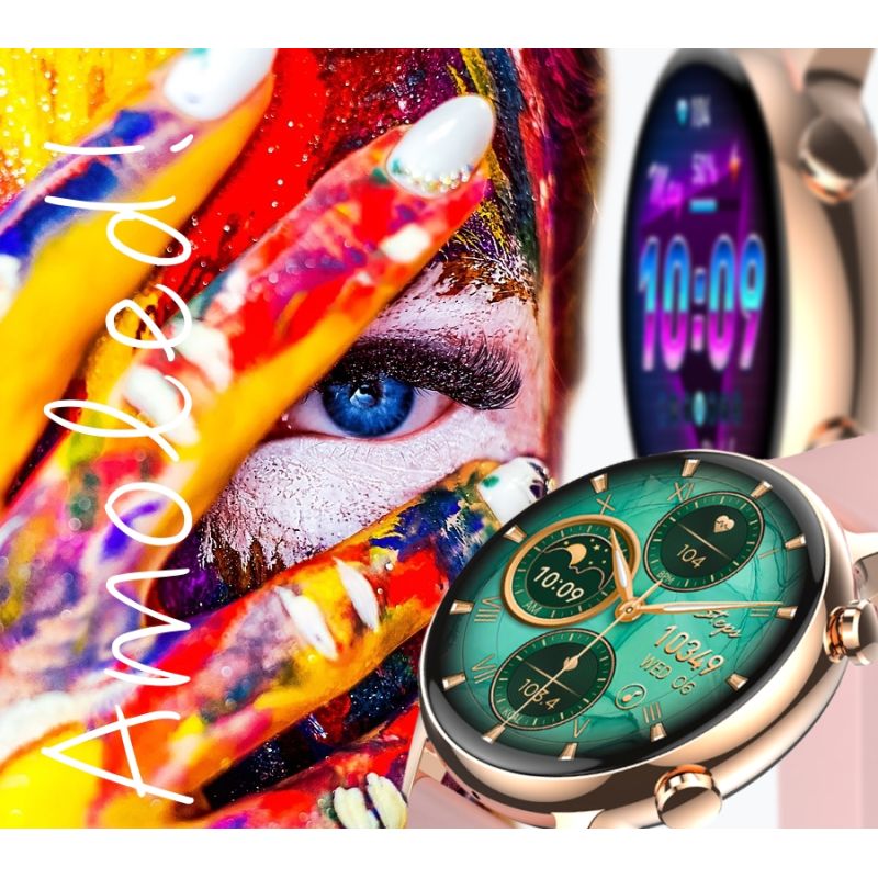 Für die aktive Frau – 123 Sportmodi , Atemtraining, Herzfrequenz-, Blutdruck- und Sauerstoffsättigungsmessung, Schlafüberwachung und Zyklus -Tracking. Die App erinnert an ausreichend Flüssigkeitszufuhr und Bewegung, zählt Schritte und Kalorienverbrauch und benachrichtigt Sie über Nachrichten und Anrufe von Facebook, WhatsApp und SMS.