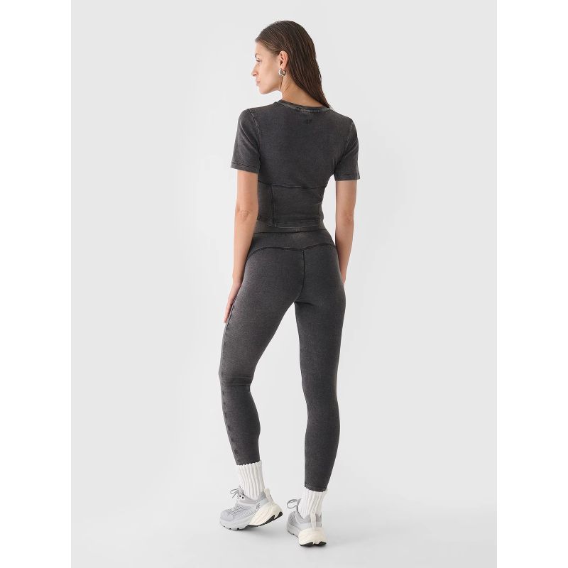 Strickleggings für Damen eignen sich perfekt für lässige und sportliche Alltagsoutfits. Diese lässigen Damenleggings haben einen schmalen, körperbetonten Schnitt. Die Single-Jersey-Webart mit glatter, einseitiger Oberfläche macht sie flexibel und angenehm zu tragen. Sie haben einen hohen Bund, der nicht verrutscht und für optimale Bedeckung sorgt, und lange Beine, die bis über den Knöchel reichen. Diese 4F-Leggings für Damen bestehen aus 95 % Baumwolle, wodurch das Material weich, strapazierfähig und angenehm anzufassen ist. Dank des Zusatzes von 5 % Elasthan sind sie dehnbar und fallen angenehm. Keine Taschen. Der elastische Bund ist nicht verstellbar. Ein elastischer Bund sorgt für eine bequeme Passform.