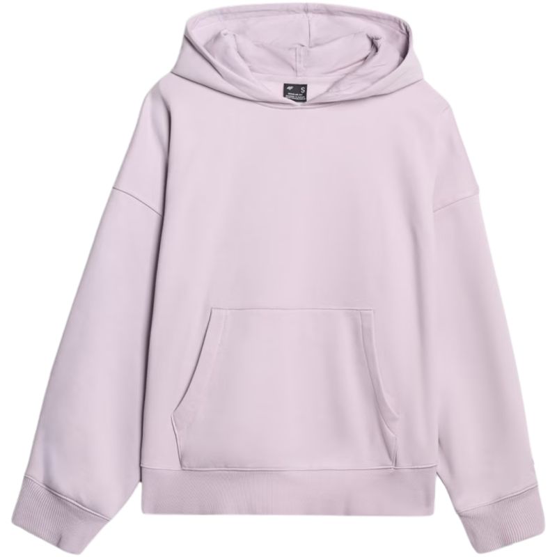 Damen-Sweatshirt 4F F1887 hellviolett 4FWAW25TSWSF1887 52S Damen-Sweatshirt ist perfekt für den Alltag. Technische Daten: Hauptmaterial: 80 % Baumwolle, 20 % Polyester Zusätzliches Material: 100 % Baumwolle Zusätzliches Material 2: 95 % Baumwolle, 5 % Elastan Gewicht: 350 g/m² – dickes, langlebiges Material für thermischen Komfort Einseitig gebürstete Innenseite – sorgt für zusätzliche Wärme und Weichheit von innen Standardschnitt – passt sich bequem der Figur an Standardschnitt bis zu den Hüften – klassische Länge für universelle Passform Hauptsächlich aus Baumwolle gefertigt – weich, langlebig und angenehm anzufassen Zugabe von Polyester – erhöht die Festigkeit des Materials und die Verschleißfestigkeit Unifarben – universelle Basis für verschiedene Stile Single-Jersey-Strick – glatte, weiche Oberfläche Ausschnitt mit integrierter Kapuze – zusätzlicher Schutz und lässiger Look Rippbündchen – stabiler Ärmelabschluss Offene Kängurutasche vorne – praktischer Platz für Hände und kleine Gegenstände Überschnittene Ärmel – schränken die Bewegungsfreiheit nicht ein und betonen den lässigen Charakter Kordelzug unten – sorgt für gute Passform
