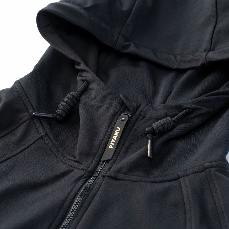Trainingsshirt, Größen: S-XL, Materialzusammensetzung: 86 % Polyester, 14 % Elastan, Ausstattung: Daumenlöcher, recyceltes Material, YKK-Reißverschluss