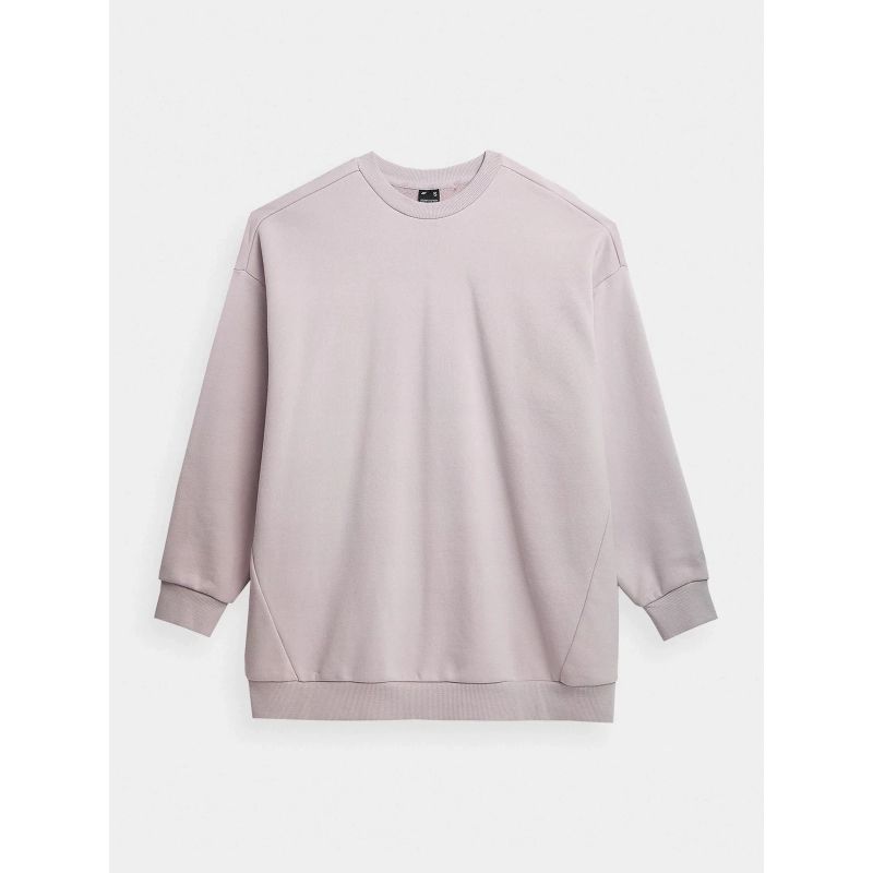 Das 4F Damen-Sweatshirt ohne Kapuze ist die perfekte Wahl für alle, die Wert auf Komfort und Bewegungsfreiheit legen. Es bietet Funktionen für Komfort und Funktionalität im Alltag. Das Sweatshirt lässt sich einfach über den Kopf ziehen und ist somit einfach und bequem anzuziehen. Das Auf- und Zuknöpfen entfällt – das spart Zeit und sorgt für Komfort im Alltag. Die Raglanärmel des Sweatshirts ermöglichen volle Bewegungsfreiheit. Dieser spezielle Schnitt macht die Ärmel flexibler und bietet mehr Bewegungsfreiheit bei körperlicher Betätigung und im Alltag. Bündchen und Saum sind mit einem Gummiband versehen, das für eine perfekte Passform sorgt und das Sweatshirt an Ort und Stelle hält. Dies verhindert ein Verrutschen und hält die Wärme. Der weiche, ungefütterte Stoff dieses Sweatshirts fühlt sich angenehm an und ist angenehm zu tragen. Es eignet sich perfekt für den Alltag und bietet Komfort und Bewegungsfreiheit, ohne zu überhitzen. Das 4F Damen-Sweatshirt ohne Kapuze ist nicht nur bequeme Freizeitkleidung, sondern auch eine modische Ergänzung Ihres Outfits. Genießen Sie Komfort, Bewegungsfreiheit und einen attraktiven Look – jeden Tag.