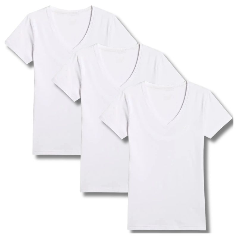 Die Damen-T-Shirts von 4F mit V-Ausschnitt wirken feminin und lassen sich vielseitig kombinieren. Das Set enthält drei T-Shirts und bietet somit eine bequeme Basis für abwechslungsreiche Alltags-Looks.
