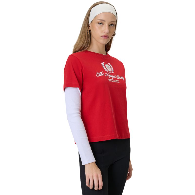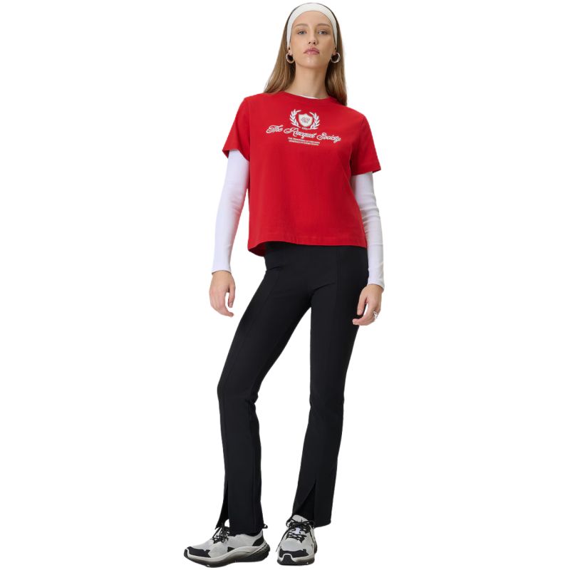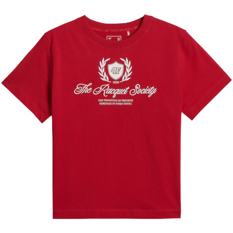 4F F2738 Damen-T-Shirt Rot 4FWSS26TTSHF2738 62S Dieses 4F Damen-T-Shirt ist perfekt für jeden Tag. Details: Material: 100 % Baumwolle. Baumwolljersey – leichtes Material für hohen Tragekomfort. Kastenförmiger Schnitt – sorgt für optimale Bewegungsfreiheit. Rundhalsausschnitt – vielseitig kombinierbar. Print auf der Vorderseite – ein modisches Statement.