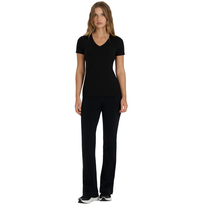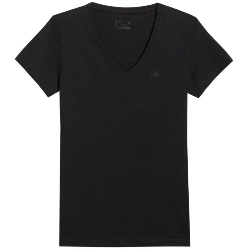 4F F2969 Damen T-Shirt Deep Black 4FWAW25TTSHF2969 20S Dieses 4F Damen T-Shirt im Geiste des Minimalismus ist ein unverzichtbarer Teil des alltäglichen Stylings. Technische Daten: Hauptmaterial: 95 % Baumwolle, 5 % Elasthan Gewicht: 180 g/m² Schnitt: schmal, passt sich der Figur an Hauptsächlich aus Baumwolle gefertigt Dehnbares Material dank Elasthan-Zusatz Unifarben, passend zu vielen Stilen Weicher Single-Jersey-Stoff mit glatter Oberfläche V-Ausschnitt