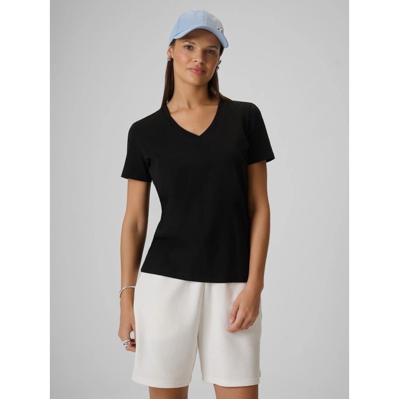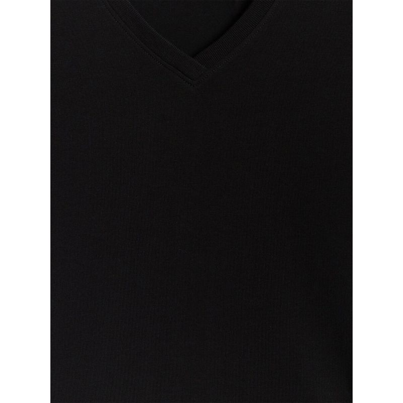 Der V-Ausschnitt rundet den Look ab und verleiht ihm eine leichte und zeitlose Note. Dieses vielseitige T-Shirt ohne Taschen ist perfekt für den Alltag – im Büro, zu Hause und beim Spazierengehen.