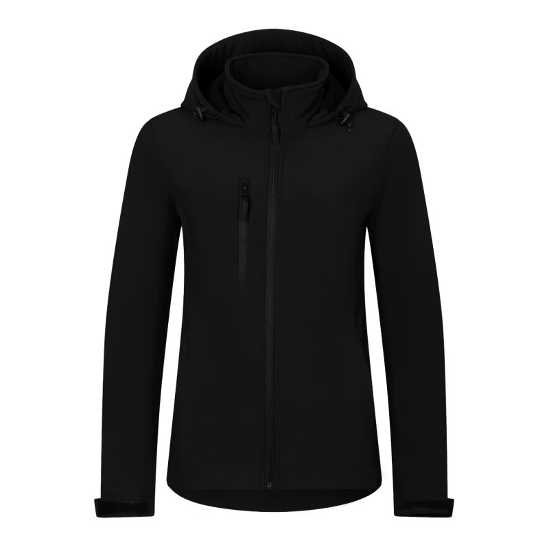 Softshell: 96 % Polyester, 4 % Elastan, 100D, 4-Wege-Stretch, wasserabweisende Ausrüstung, Innenseite: 100 % Polyester - Mikrofleece, Anti-Pilling-Ausrüstung, ohne Label - bereit für Rebranding, 2-lagiges Softshell, leicht taillierter Schnitt, durchgehender umgekehrter Reißverschluss mit Kinnschutz, elastische Kapuze mit Kordelzug und Kordelzug am Saum, Label am hinteren Saum in neutraler Größe, verstellbare Ärmelbündchen mit Klettverschluss, Taschen mit umgekehrtem Spiralreißverschluss, Brusttasche, hinten leicht verlängert, Innenfleece mit Anti-Pilling-Ausrüstung