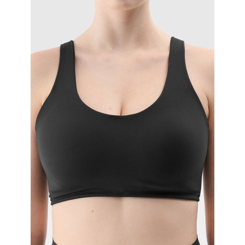 Dieser Trainings-BH mit mittlerem Halt ist ideal für Workouts mittlerer Intensität wie Joggen, Cardio und Radfahren. Das figurbetonte Design schmiegt sich an den Körper an und bietet Halt und Bewegungsfreiheit, während die nahtlose Verarbeitung Reibung und Hautirritationen minimiert. Hergestellt aus strapazierfähigem und dennoch weichem Interlock-Gewebe mit glatter Oberfläche auf beiden Seiten, sitzt er perfekt und absorbiert Feuchtigkeit effektiv. Schnelltrocknende Fasern mit 4FDry-Technologie leiten Schweiß vom Körper weg und sorgen so für ein angenehmes Tragegefühl auch bei intensiver Aktivität. Die halbgepolsterten, vorgeformten Cups sind in den BH integriert und bieten stabilen Halt ohne zusätzliche Anpassungen. Ein elastisches Unterbrustband und breite, feste Träger erhöhen Komfort und Bewegungsfreiheit, während lasergeschnittene Kanten am Rücken für eine ansprechende Optik und zusätzlichen Tragekomfort sorgen.