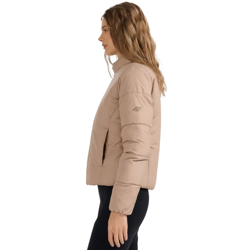 4F Damenjacke F0705 Beige 4FRAW25TDJAF0705 083S Diese 4F Damenjacke ist perfekt für Alltag und sportliche Aktivitäten an wärmeren oder bewölkten Tagen in der Übergangszeit. Sie kann auch als isolierende Schicht unter einer Jacke mit wasserdichter Membran getragen werden. Technische Daten: Hauptmaterial: 100 % Polyester, Futter: 100 % Polyester, Füllung: 100 % Polyester. Schmale Passform – passt sich dem Körper an und betont den sportlichen Charakter. Hüftlänge – Standardschnitt, geeignet für den Alltag. Leichte Übergangsjacke – ideal für wärmere, bewölkte Tage. Hydrophobe Beschichtung – reduziert die Feuchtigkeitsaufnahme und schützt vor leichtem Regen. Synthetische Füllung – bietet Wärmeisolation auch bei Feuchtigkeit. Ripstop-Material – erhöhte Reißfestigkeit und Widerstandsfähigkeit gegen mechanische Beschädigungen. Niedriger Stehkragen – zusätzlicher Schutz des Halses vor Kälte. Gummierte Bündchen – bessere Passform und geringerer Windeintritt. 2 Seitentaschen mit Reißverschluss – sichere Aufbewahrung von Kleinigkeiten. Einseitig zu öffnender Hauptreißverschluss mit Windschutzleiste – schützt vor Wärmeverlust.