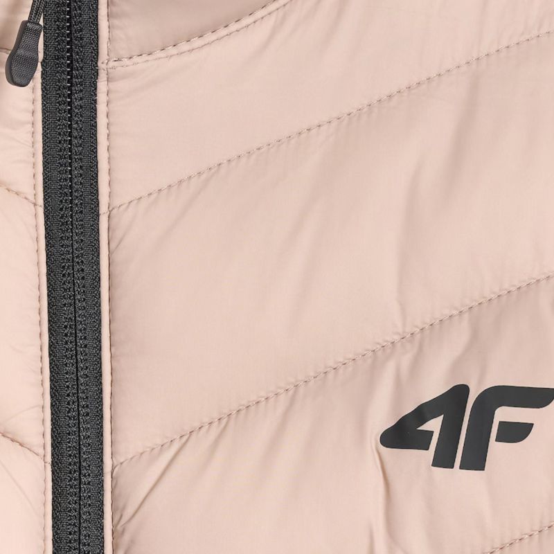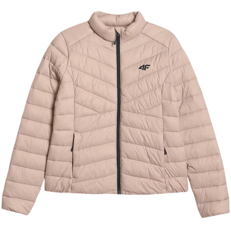 4F Damenjacke F0855 Beige 4FWSS26TDJAF0855 83S. Diese leichte Damenjacke für kalte Tage ist mit einer wärmenden und feuchtigkeitsregulierenden Synthetikfüllung ausgestattet. Eine wasserabweisende Beschichtung reduziert die Feuchtigkeitsaufnahme bei leichtem Regen, während die Steppkonstruktion für gleichmäßige Wärme sorgt. Ein Stehkragen schützt vor Wind, und die schmale Passform garantiert hohen Tragekomfort. Elastische Bündchen an Ärmeln und Saum halten die Wärme im Inneren, und Reißverschlusstaschen bieten praktischen Stauraum im Alltag. Technische Daten: Hauptmaterial: 100 % Polyester, Futter: 100 % Polyester, Füllung: 100 % Polyester, Synthetische Daunen – sorgen für Wärme und Leichtigkeit und sind auch nach häufigem Tragen pflegeleicht. Wasserabweisende Imprägnierung – das Obermaterial reduziert die Wasseraufnahme und bietet Schutz vor leichtem Regen. Steppkonstruktion – verteilt die Isolierung gleichmäßig und verleiht der Jacke einen dynamischen, sportlichen Look. Stehkragen – schützt vor Wind und Kälte. Taillierter Schnitt – betont die feminine Silhouette und sorgt für hohen Tragekomfort. Zwei Reißverschlusstaschen – sichere Aufbewahrung kleiner Gegenstände für den Alltag. Elastische Bündchen und Saum – für optimale Passform und Schutz vor Kälte und Wind.