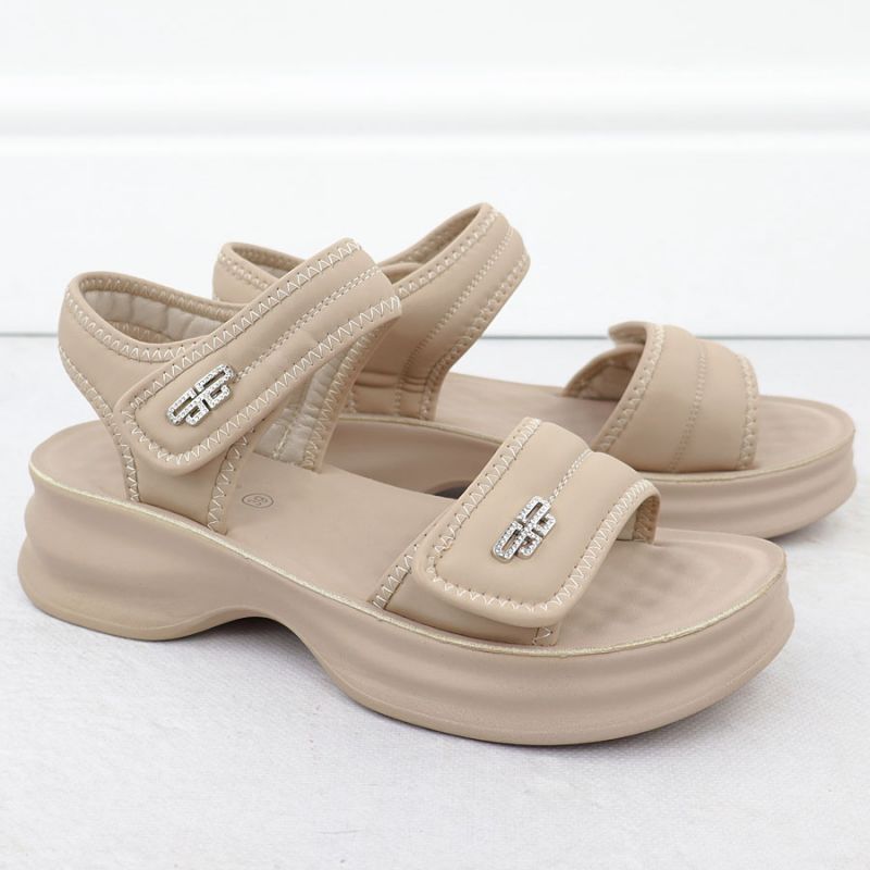Damensandalen mit dicker Sohle und Klettverschluss, beige Potocki 105300