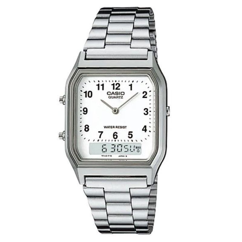 Die Casio AQ-230 ist eine Uhr, die Prestige, Funktionalität und zeitlose Ästhetik vereint . Sie ist die ideale Wahl für alle, die Vintage-Stil schätzen, aber nicht auf moderne Funktionen verzichten möchten. Die Casio AQ-230 bietet nicht nur ein ansprechendes Design, sondern auch höchste Präzision. Dank des dualen Analog-Digital-Displays können Sie die Zeit in zwei Zeitzonen gleichzeitig ablesen, während zusätzliche Funktionen wie Alarm, Stoppuhr und automatischer Kalender ihre Praktikabilität erhöhen.