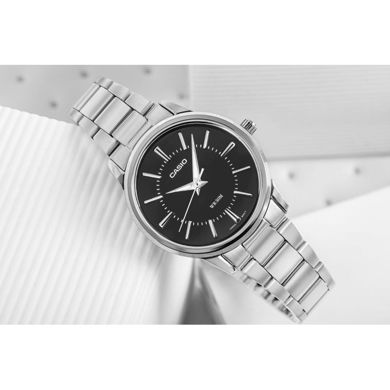 Die CASIO LTP-1303D-1AVDF ist eine Uhr, die die Essenz eleganter Schlichtheit perfekt verkörpert. Ihr minimalistisches Zifferblatt mit dezenten Indizes und schlanken Zeigern sorgt für einen außergewöhnlich stilvollen und klaren Look. Das klassische, runde Gehäuse in Kombination mit einem Edelstahlarmband ergibt ein zeitloses Design, das nie aus der Mode kommt. Sie ist die perfekte Wahl für alle, die Vielseitigkeit schätzen – ob im Büro oder bei informellen Treffen. Leicht, komfortabel und unaufdringlich, aber dennoch außergewöhnlich elegant, wird dieses Modell Ihren Look stets perfekt ergänzen.
