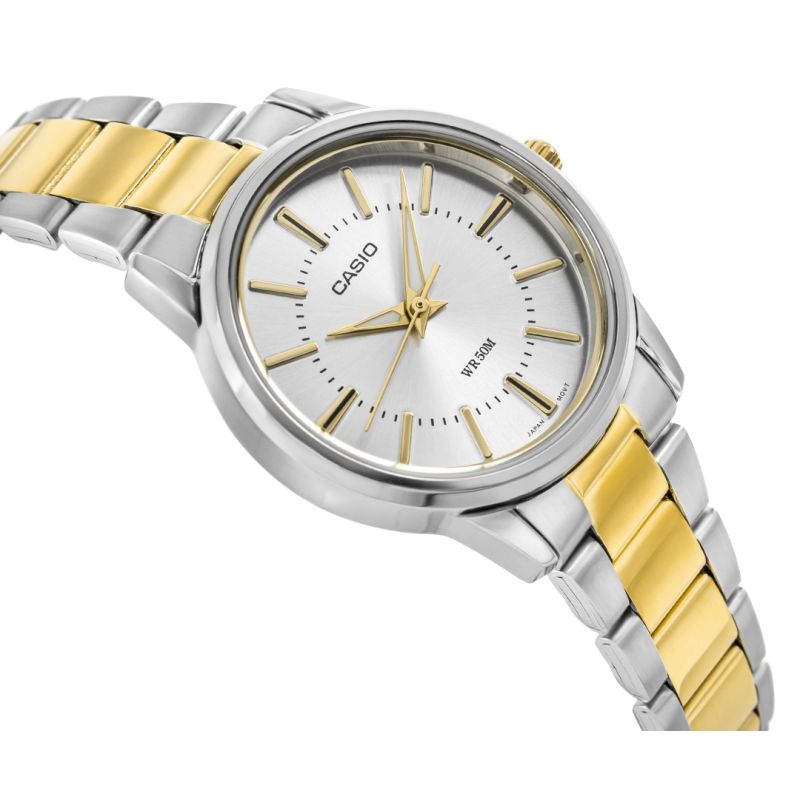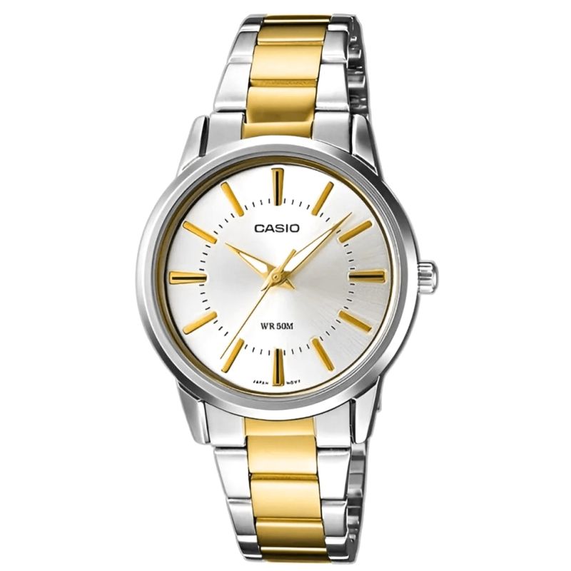 Die CASIO LTP-1303SG-7AVDF ist eine Uhr, die die Essenz eleganter Schlichtheit perfekt verkörpert. Ihr minimalistisches Zifferblatt mit dezenten Indizes und schlanken Zeigern sorgt für einen außergewöhnlich stilvollen und klaren Look. Das klassische, runde Gehäuse in Kombination mit einem Edelstahlarmband ergibt ein zeitloses Design, das nie aus der Mode kommt. Sie ist die perfekte Wahl für alle, die Vielseitigkeit schätzen – ob im Büro oder bei informellen Treffen. Leicht, komfortabel und unaufdringlich, aber dennoch außergewöhnlich elegant, wird dieses Modell Ihren Look stets perfekt ergänzen.